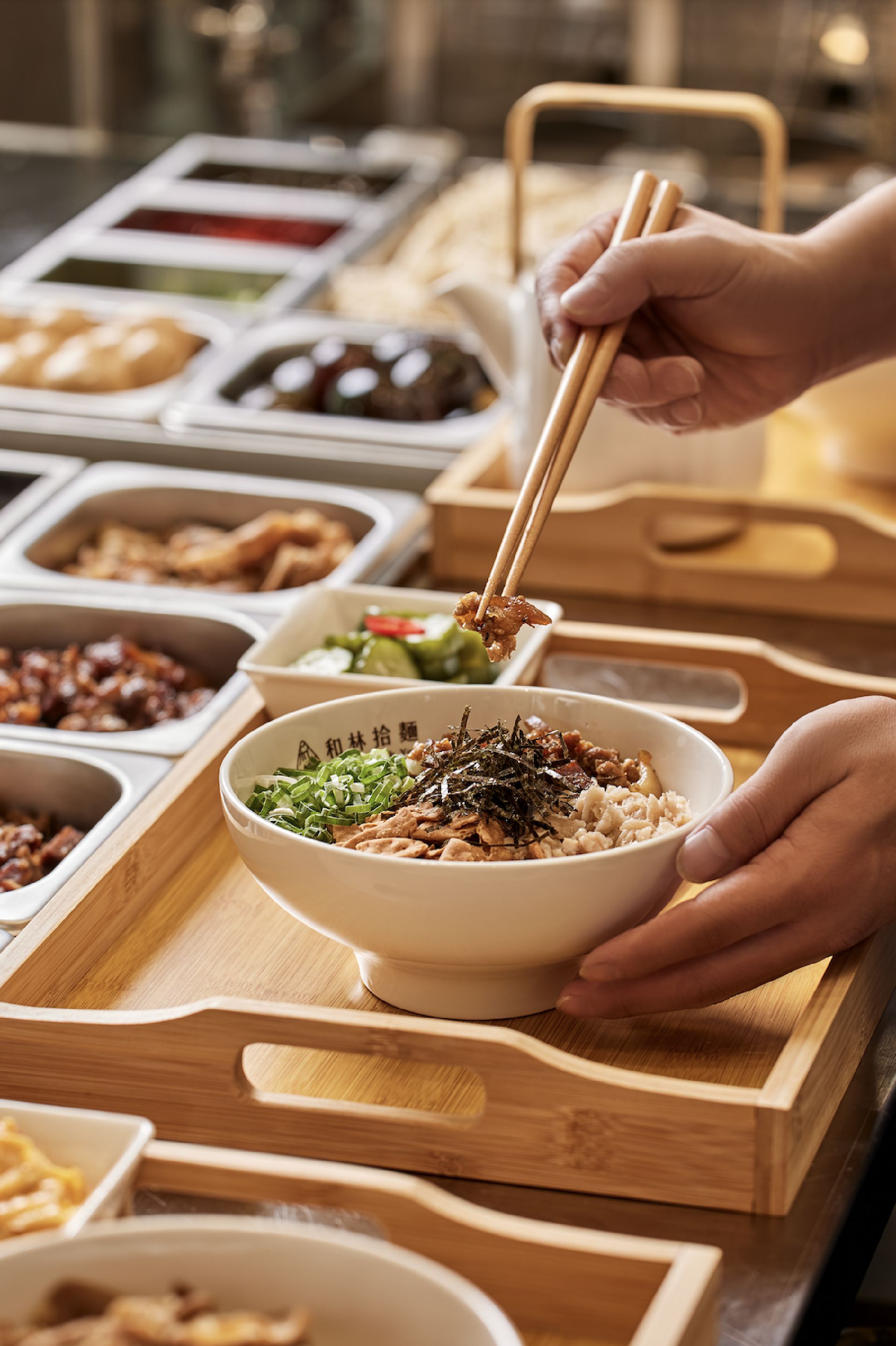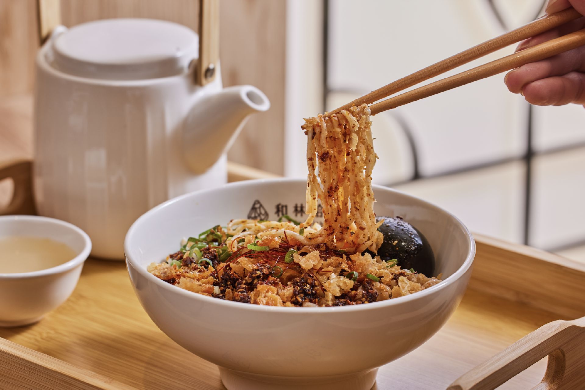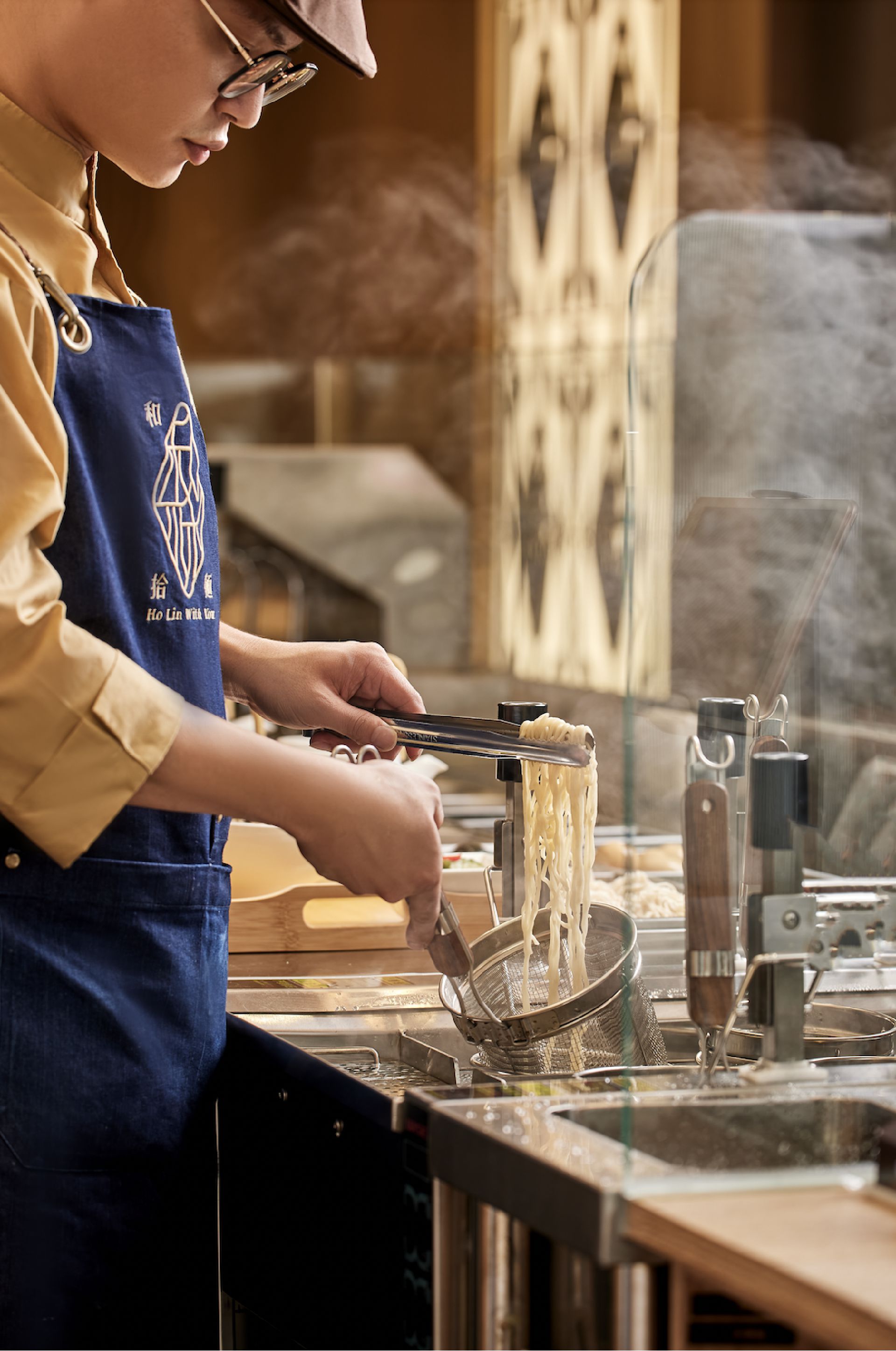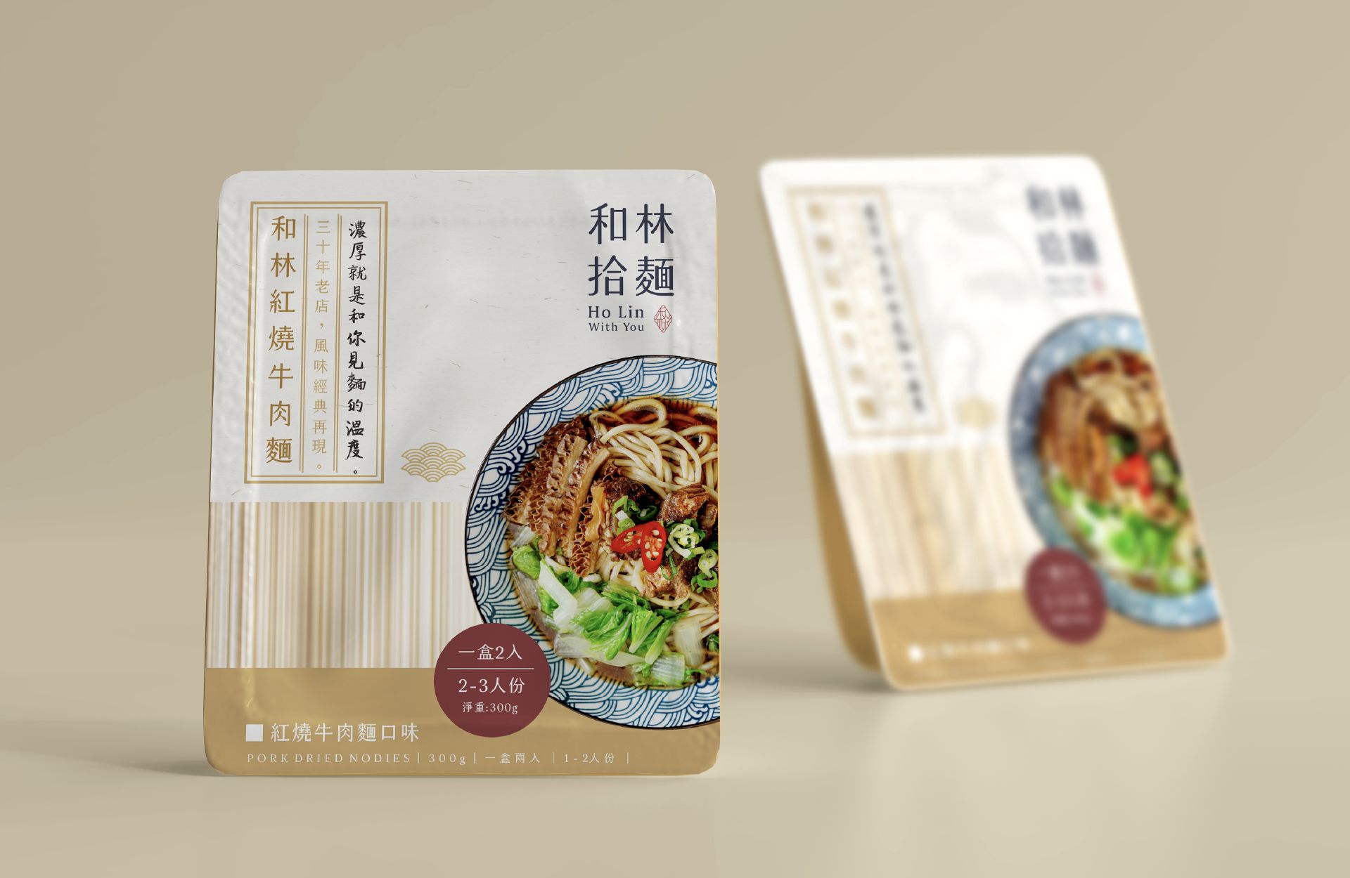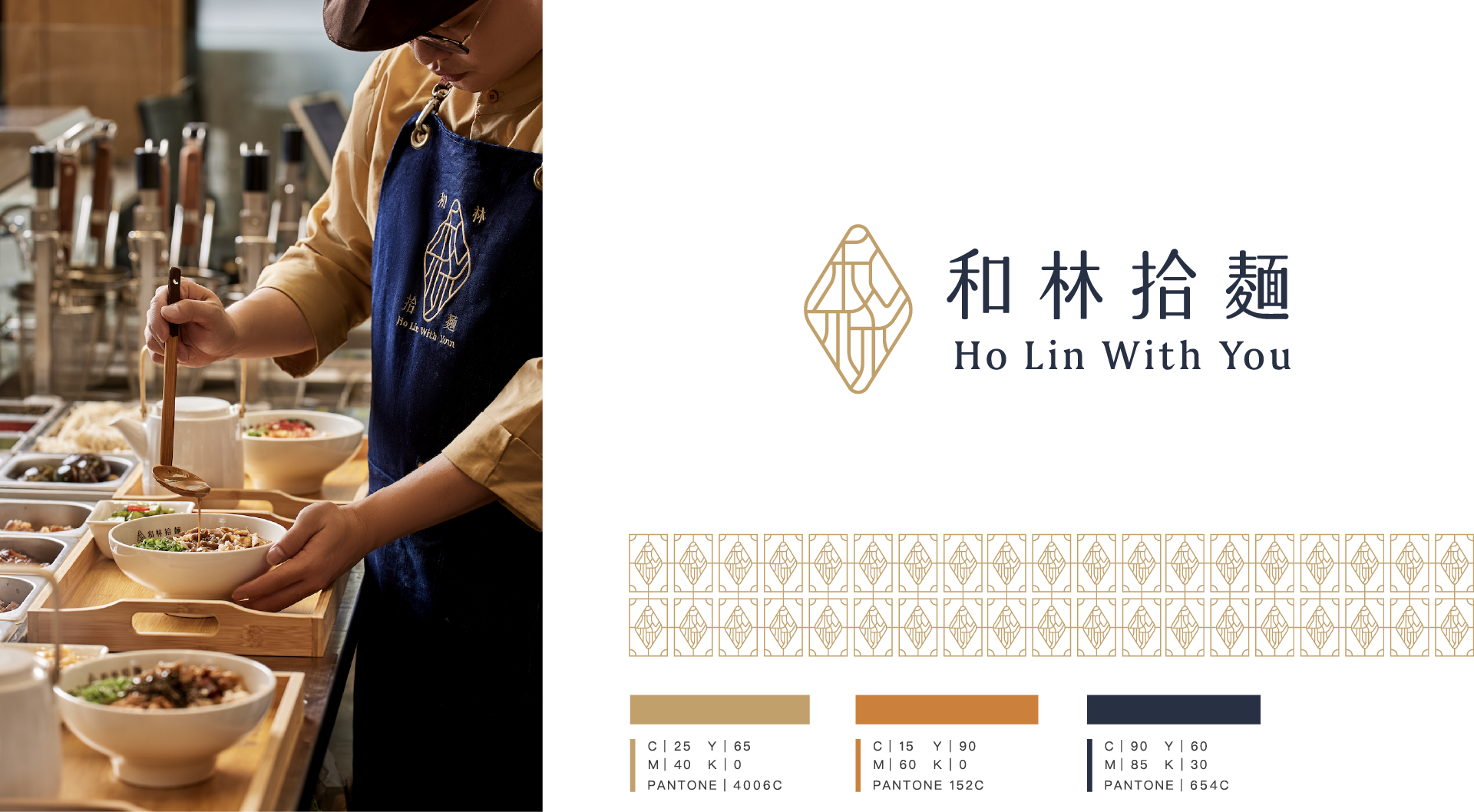 「和林拾麵」取自台語諧音「和你食麵」,展現出一種邀請您共享食光的溫度連結。其中「和林」二字的文化意象,既有在地語感的溫度,且朗朗上口、易於記憶,傳遞出品牌與顧客間的情感橋樑。