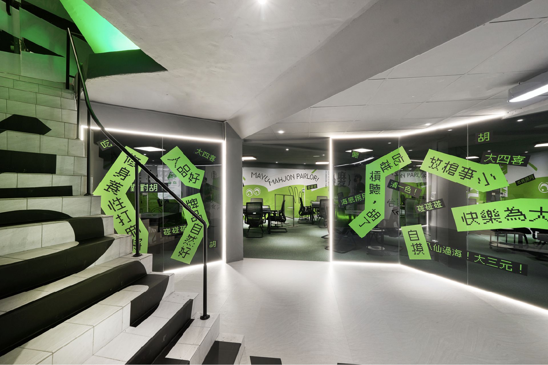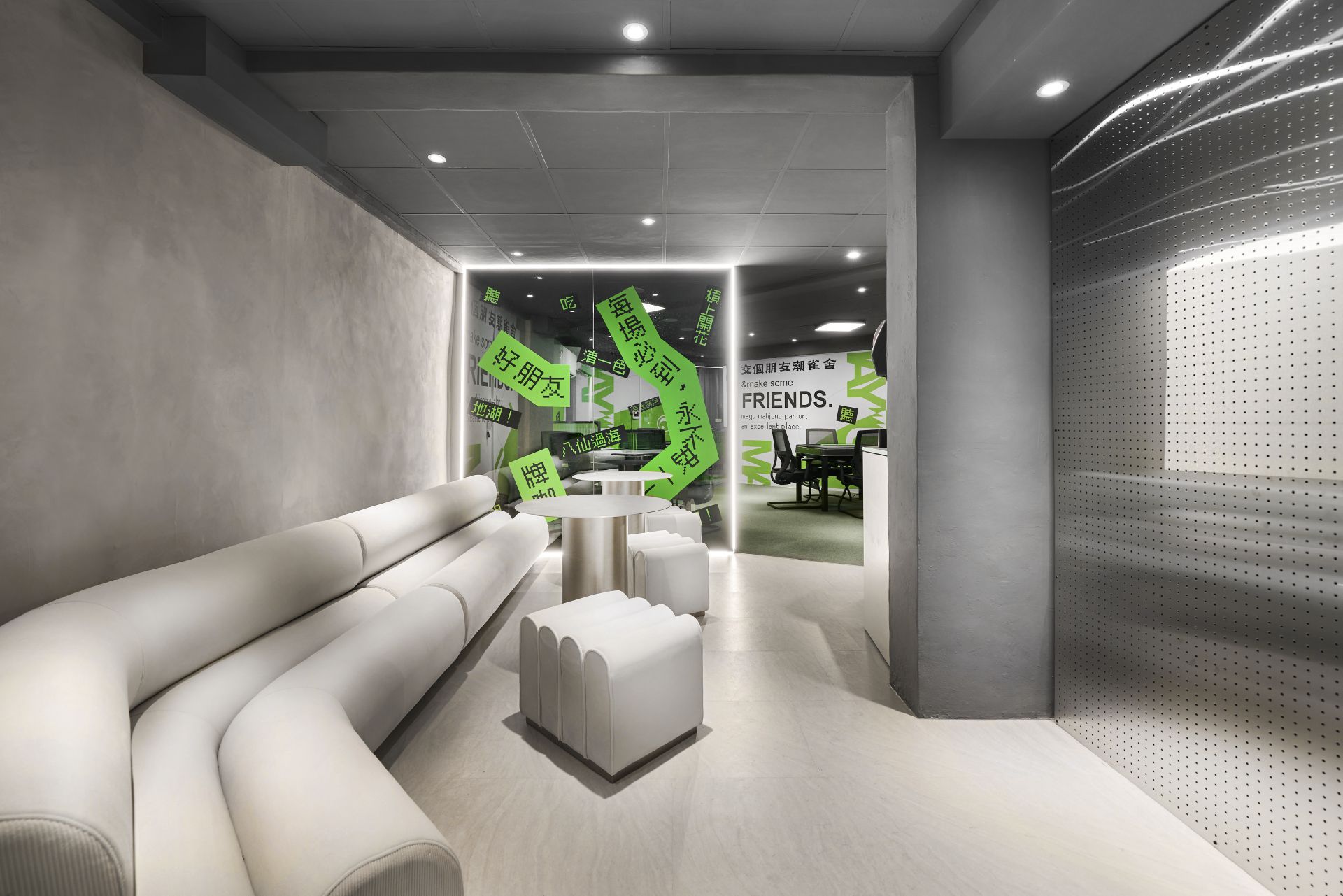 本商業空間設計由「言午設計」操刀,從品牌核心精神「吃喝玩樂」出發,打造吸睛有趨的「網紅潮店」。整體空間以極簡灰白為基底,搭配標準色綠色與黑色,營造出年輕、新奇又具辨識度的潮流感受。形象牆、燈光配置與陳列細節皆巧妙呼應品牌個性,塑造出視覺衝擊與互動趣味兼具的娛樂場域。
